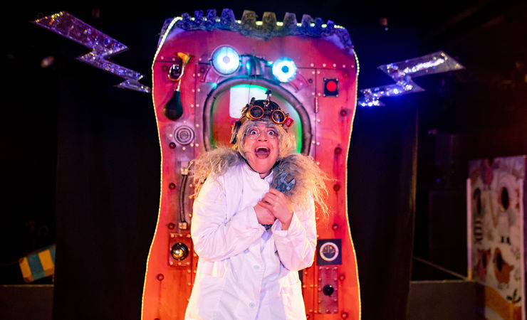 Prof Frankenstein feels lonely. She has no friends and the local villagers are afraid of her. The professor thinks a baby might change things and so, one stormy night with a flash of lightning and the help of her robot Igor, she creates... FRANKY! Although Franky is not quite what the Prof imagined, he sets off on an adventure to win the hearts of the grumpy villagers with the help of his new friend Fairground Annie and a dazzling lighting display from Igor the Robot.